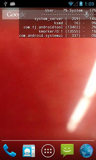 화면 overlay 에 전체 cpu 사용량 및 프로세스 cpu 사용량을 표시하는 앱입니다.